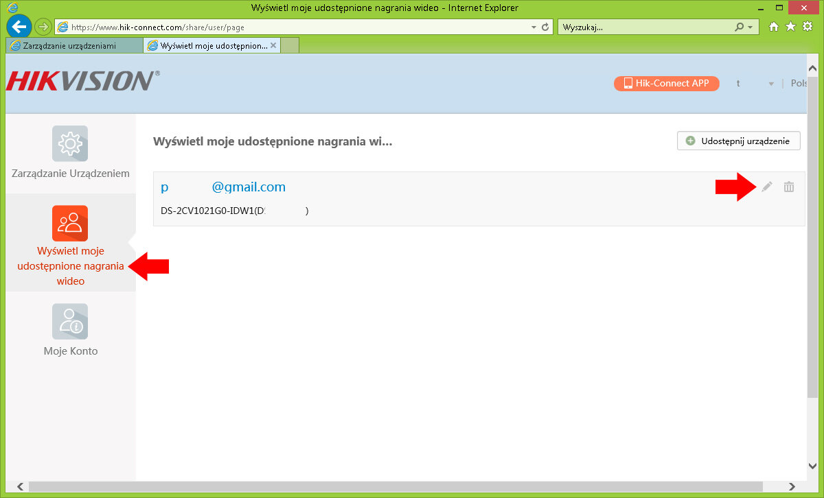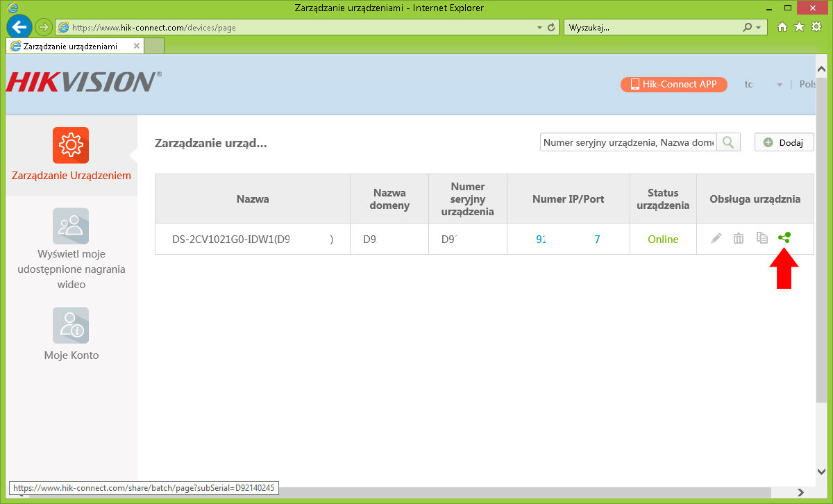 Deling av en enhetsvisning via Hik-Connect-plattformen på www.hik-connect.com