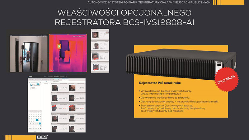 - Systemet måler kontinuerlig, automatisk og berøringsfritt kroppstemperaturen til personer som befinner seg innenfor systemets rekkevidde.