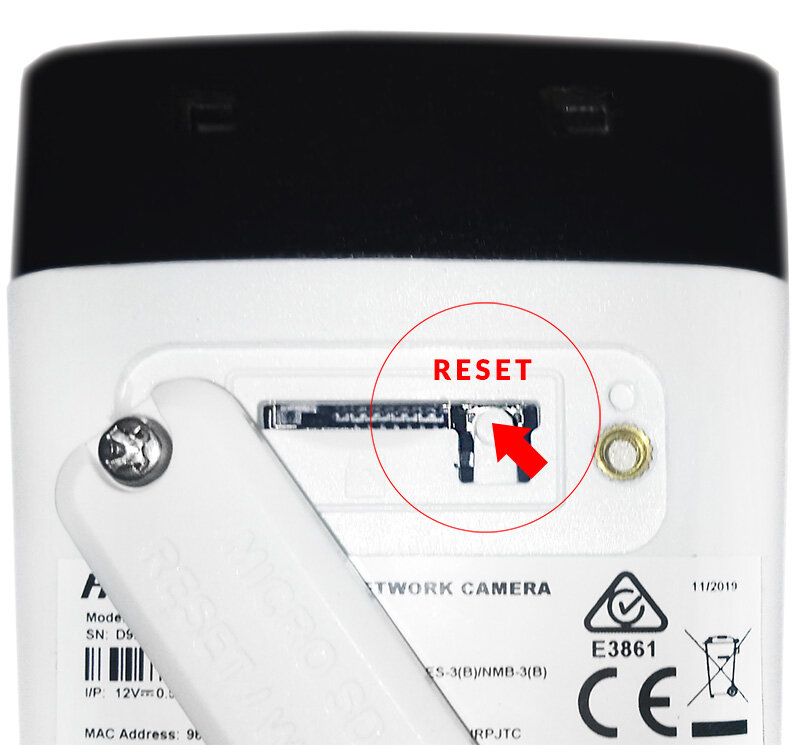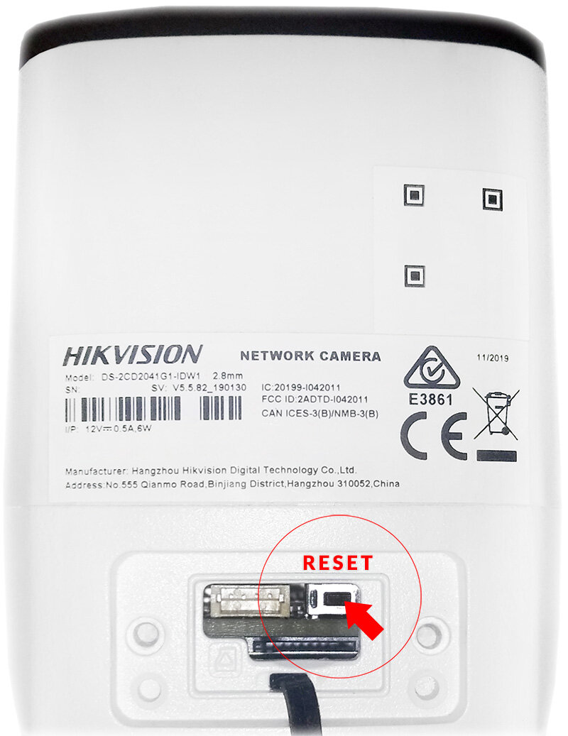 Slik tilbakestiller du et Hikvision DS-2CD2041G1-IDW1, DS-2CD2141G1-IDW1, DS-2CV1021G0-IDW1, IPC-1021, IPC-1021BL, IPC-2041, IPC-2041BL, IPC-2141, IPC-2141BL, IPC-2051 kamera
