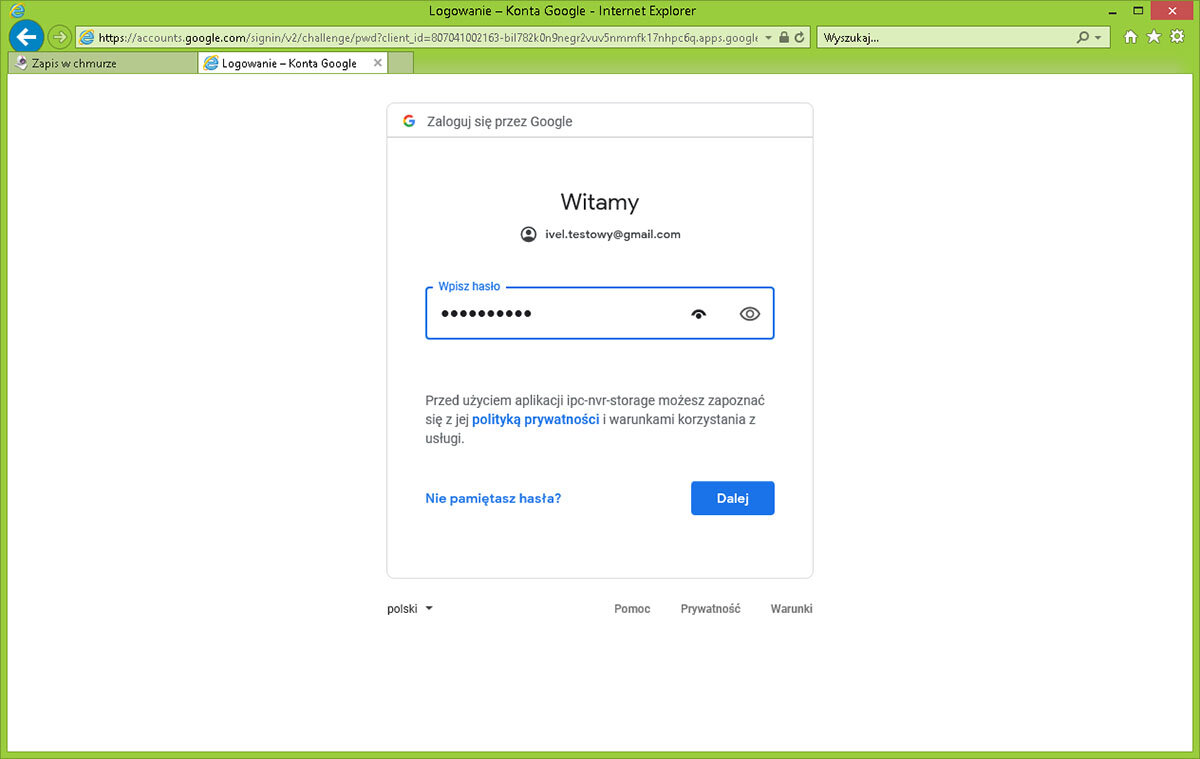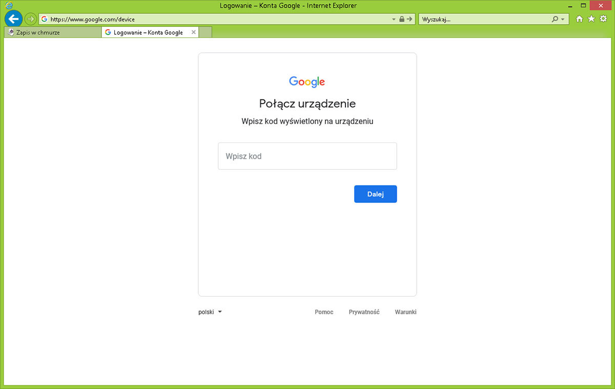 Skriv inn adressen til Cloud Site i adressefeltet, dvs. https://www.google.com/device.