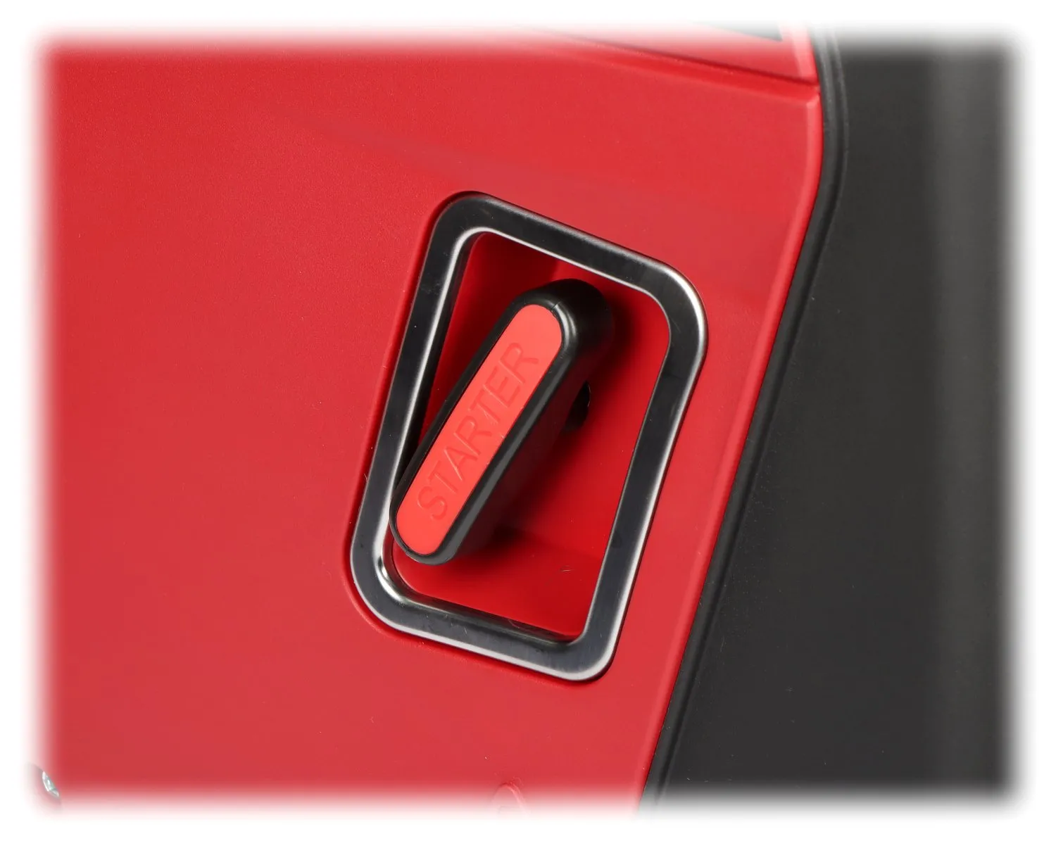 - Konstrukcja: uzwojenia miedziane; zabezpieczenie przeciążeniowe + sygnalizacja niskiego oleju i przeciążenia; 500×300×450 mm, 23,2 kg, czerwony, Dynamo
