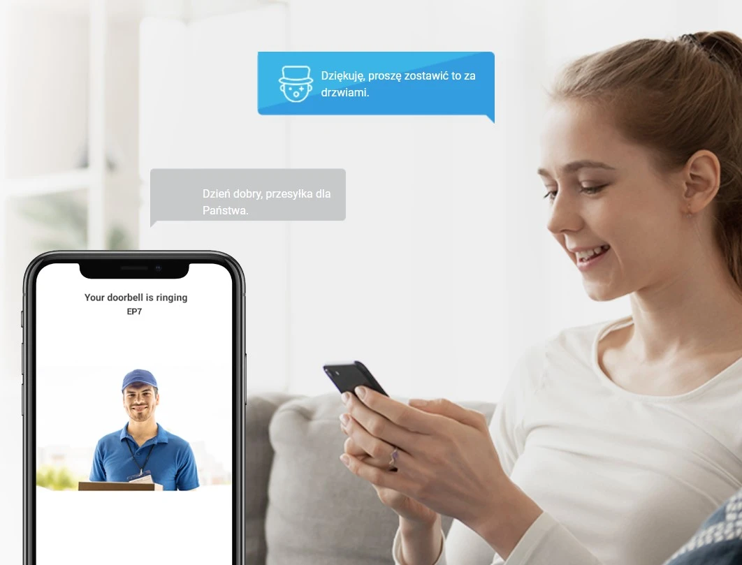 Selv om du ikke er hjemme, sørger EP7 for at du ikke går glipp av noen besøkende. En rekke funksjoner gjør at du kan invitere folk inn og eventuelt be ubudne gjester ut - alt ved hjelp av fingertuppene.