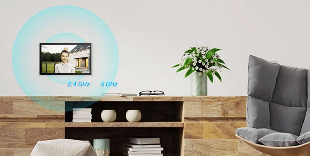 For å maksimere tilkoblingskvaliteten kan du koble innendørsskjermen til enten 2,4- eller 5 GHz-båndet. Du får et sterkt Wi-Fi-signal med lav ventetid, høy gjennomstrømning og et stabilt signal.
