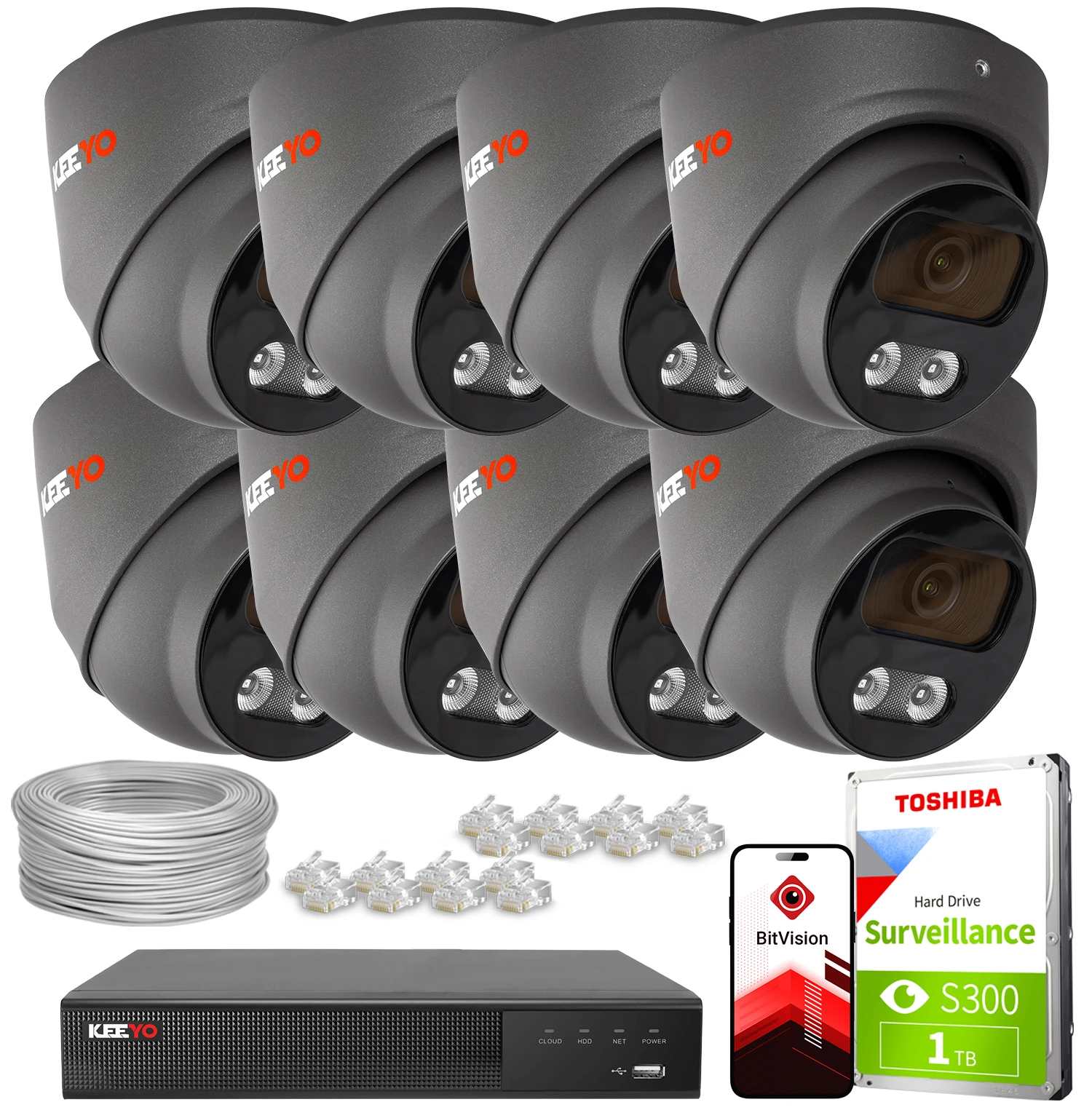 IP-overvåkingssett KEEYO 8x LV-V-IP8M25DF-G-II 8Mpx IR 25m