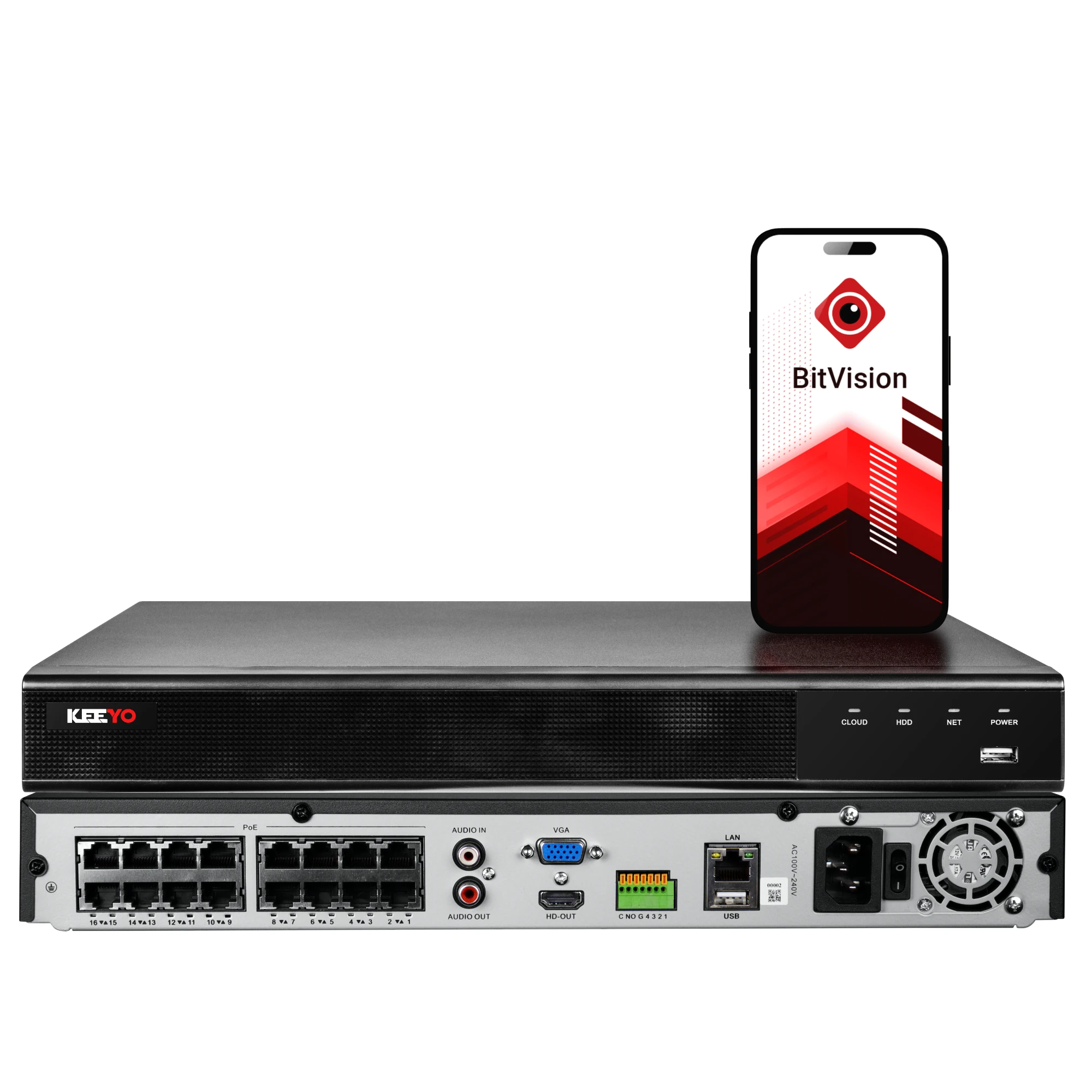 KEEYO LV-V-NVR-16CH-16P-K2 nettverksopptaker 16-kanals 16x PoE 2x SATA
