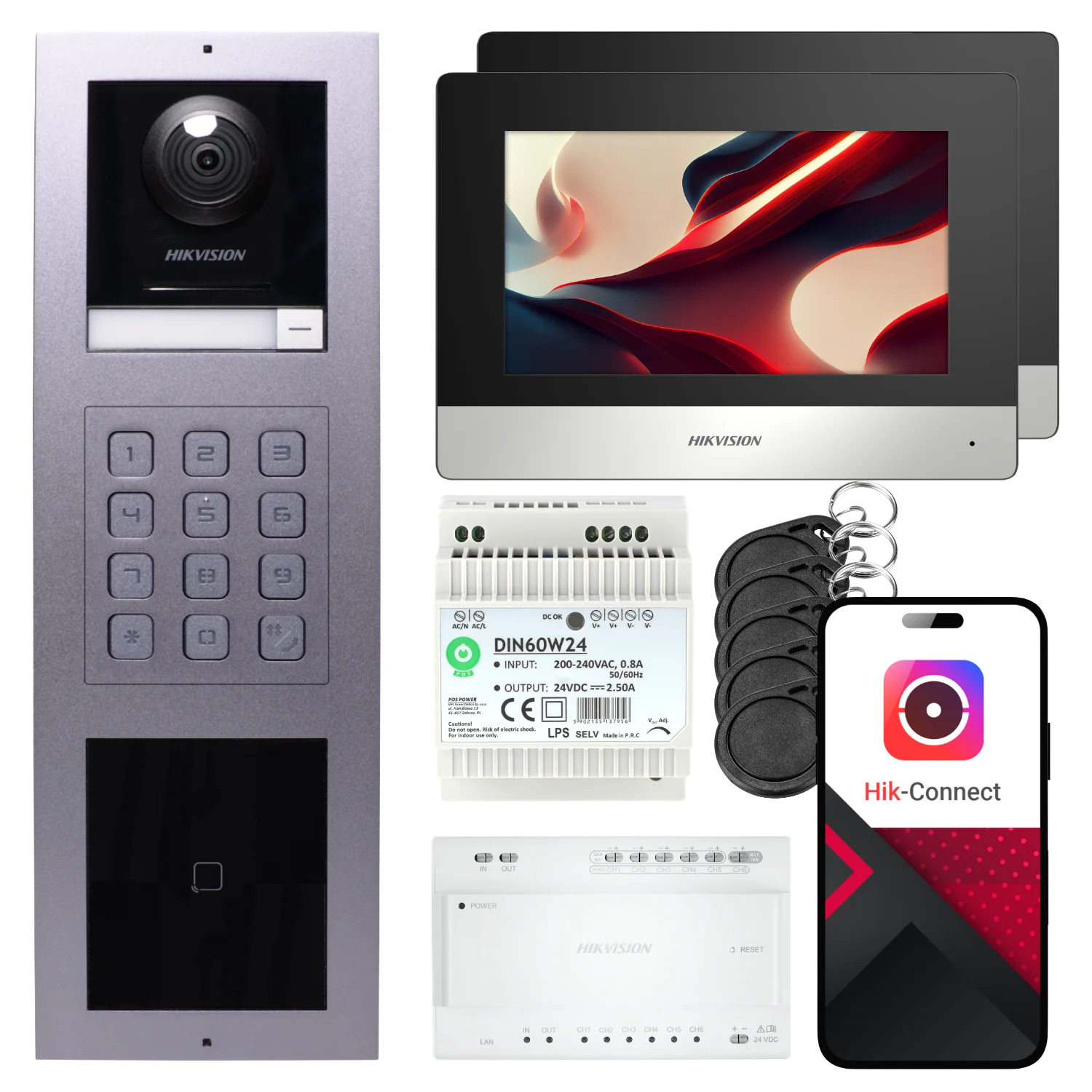 2-tråds videointercom Hikvision 2x monitor DS-KH6320Y-WTE2 svart, overflatemontert panel, tastatur, kortleser