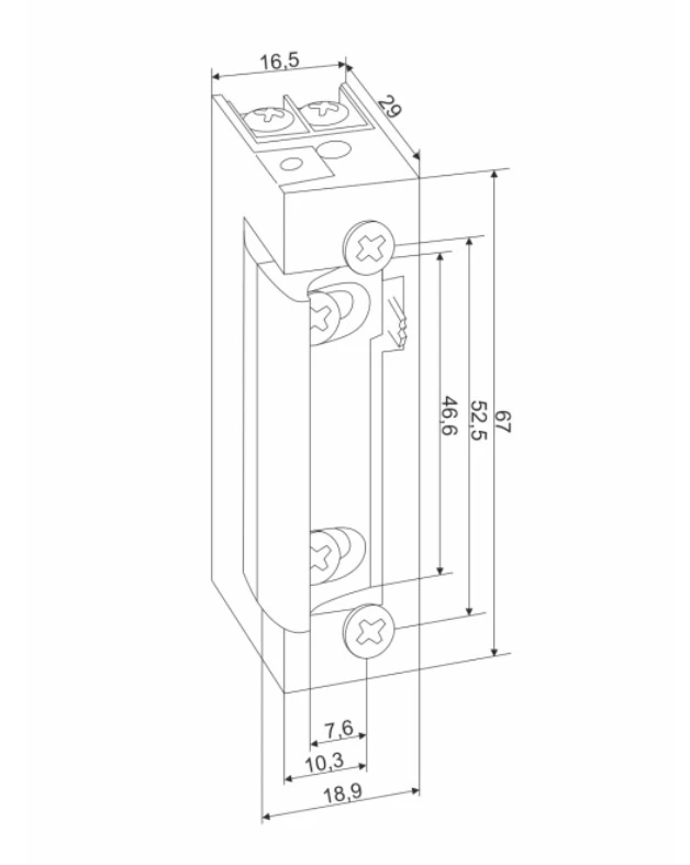 - 67 mm høy, 16,5 mm bred for bruk i smale profiler