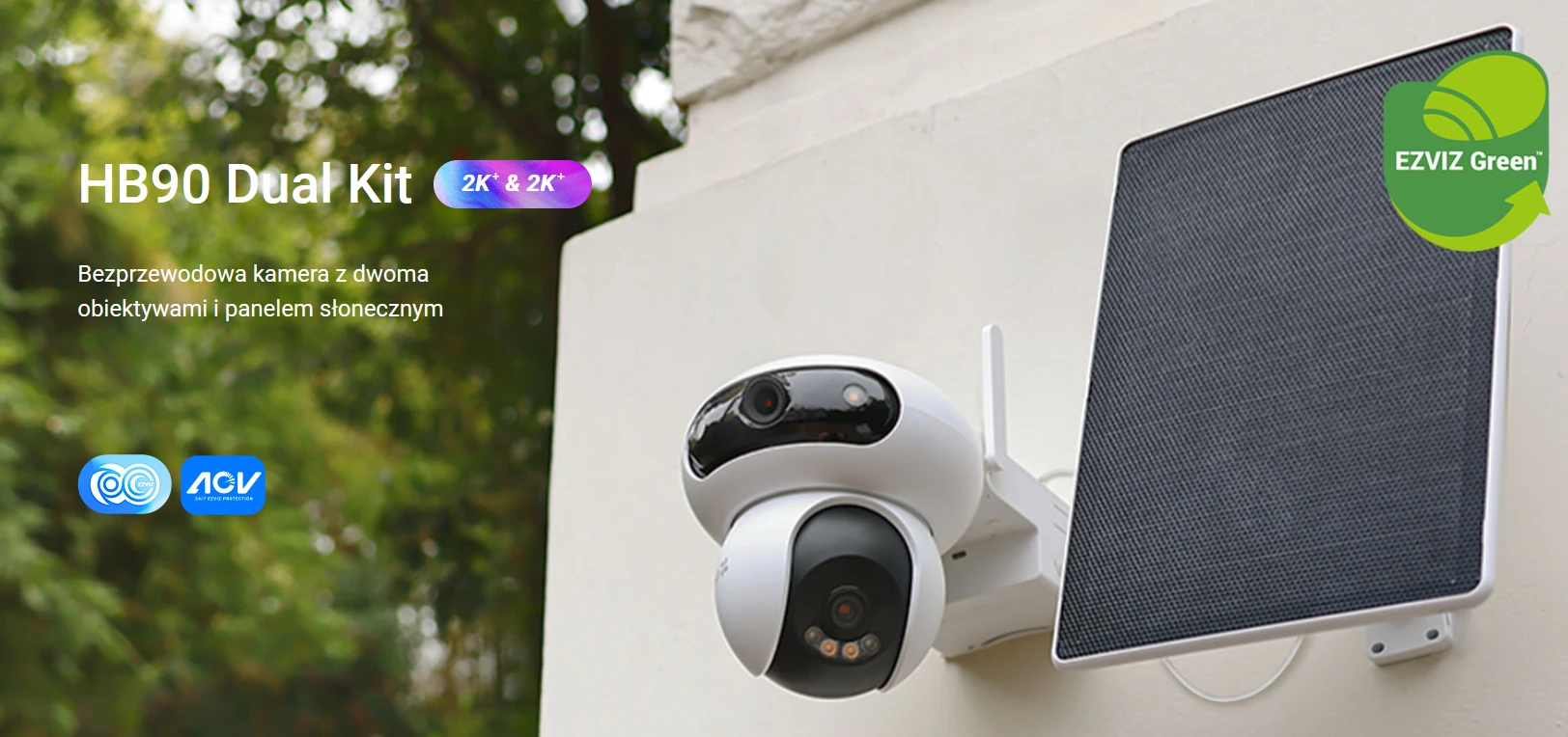 EZVIZ HB90/SP Dual Wi-Fi IP roterende kamera, AI, deteksjon, lyd, solcellepanel