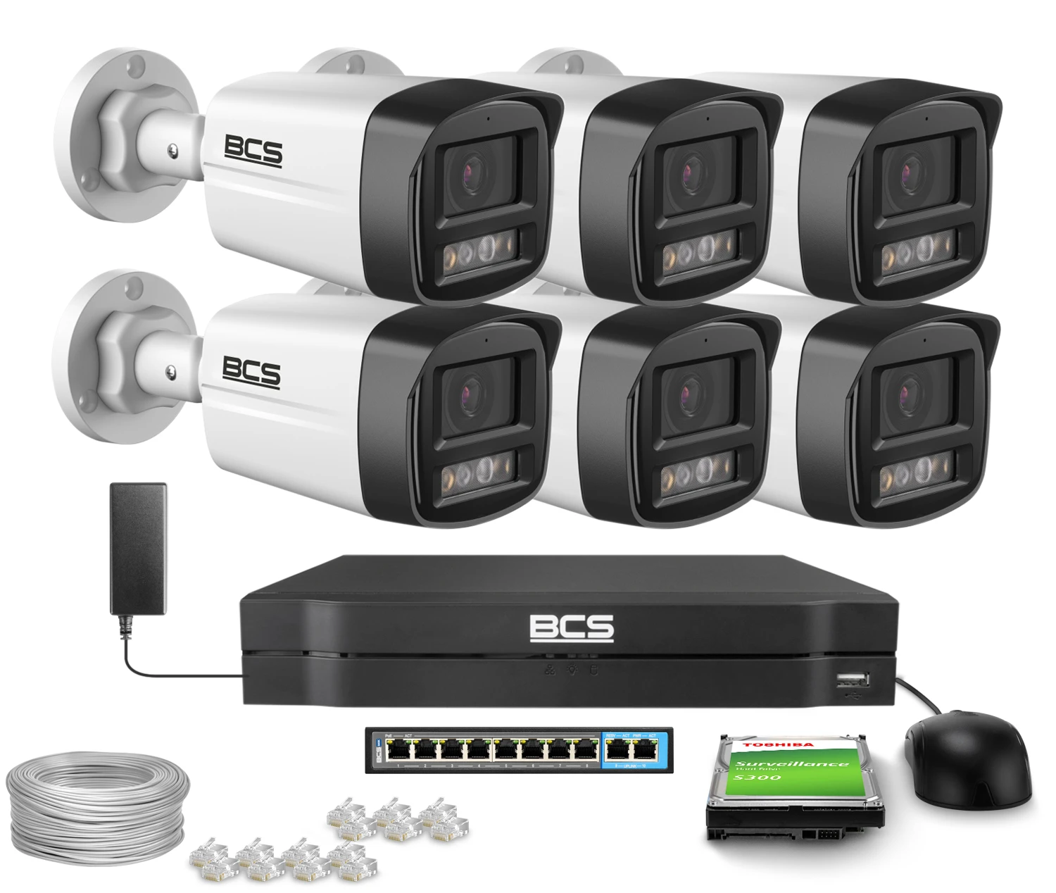 Zestaw do monitoringu IP 6x BCS-L-TIP14FSR3L3, 4Mpx, SkyLight, WDR 120dB