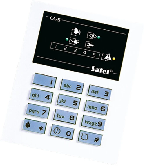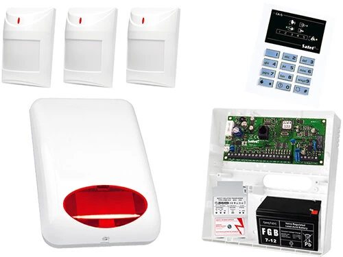 SATEL alarmsystem: CA-5 P sentral, CA-5 KLED-S manipulator, 3 x AQUA PET detektor, SPL-5010 R signalgenerator, Tilbehør